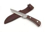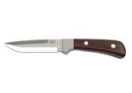 Celokovová čepeľ so zahnutým ostrím a hladkým chrbtom je vyrobená z kvalitnej nehrdzavejúcej ocele 420 a je vybavená drevenou pošvou v tmavohnedých odtieňoch. Výrez na ukazovák v oblasti záštity umožňuje pevné a stabilné uchopenie.