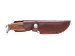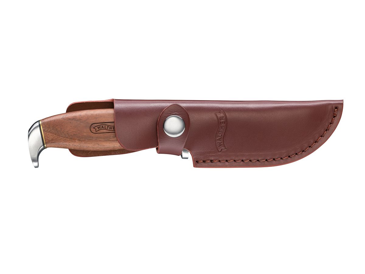 Masívny nôž Walther Premium Skinner so saténovou 3,8 mm hrubou čepeľou z ocele 440C a drevenou rukoväťou z orechového dreva. Je ideálny pre prácu v teréne, sťahovanie kože, ako aj pre mnohé iné poľovnícke práce. Elegantne tvarovaná orechová rukoväť má chránič ruky z nehrdzavejúcej ocele, ohraničenú peknými mosadznými rozperami, ktoré zabraňujú vykĺznutiu z ruky v oboch smeroch. Walther Premium Skinner je dodávaný v koženom obale, takže ho môžete mať stále pri sebe.