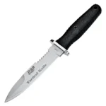 Rukoväť noža je pokrytá polymérom so zdrsneným povrchom. Kovová záštita zabráni pohybu ruky na čepeľ noža pri práci. Súčasťou noža je kožené puzdro pre nosenie na opasku alebo pod ramenom.
